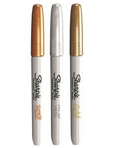 C. Sharpie® Metallic Fine Point Permanent Markers • Brilliant sheen on both light and dark surfaces! • Opaque metallic permanent ink writes on most surfaces. • Unlike a paint marker, there is no shaking or pumping needed to get the marker started - simply uncap and write • AP Certified non-toxic ink is water, smear and fade-resistant ... View This Document
